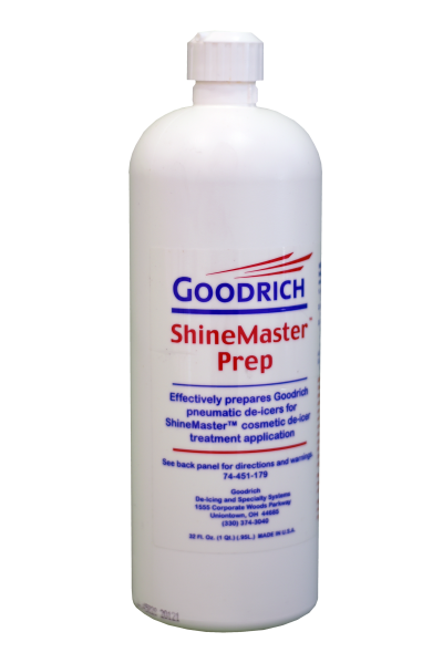 Goodrich ShineMaster™ Prep (Part Number 74-451-179) removes dirt, grease, oil, silicone products and other contamination as well as residual ShineMaster™ before reapplication.